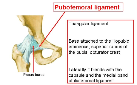 - 치골대퇴인대(Pubofemoral Ligament): 과도한 외전과 신전을 제한합니다.