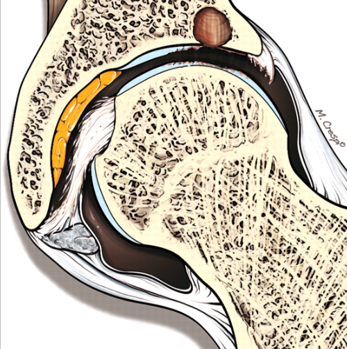 - 원형인대(Ligamentum Teres): 관절 내에 있는 작은 인대로, 대퇴골두에 혈액을 공급하는 혈관이 포함되어 있습니다.