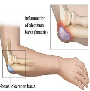 설명: 활액낭염은 팔꿈치 주변의 활액낭에 염증이 생기는 상태로, 통증과 부종을 유발합니다. 활액낭은 관절 주변에 위치한 작은 주머니로, 관절의 움직임을 부드럽게 하는 역할을 합니다.